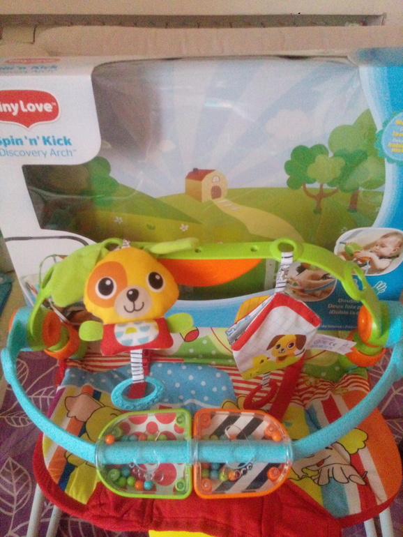 Шезлонг плюс дуга - мой в день раза 4 там минут по 40 лежит, коврик тини лав правда я туда повесила игрушки другие- жирафа тоже тини лав -любит его за ноги хватать и в рот тянет, а также гусеничка - но с ней больше поболтать. На руках он готов целый день гулять , а вот моя спина нет.и помощников нет.