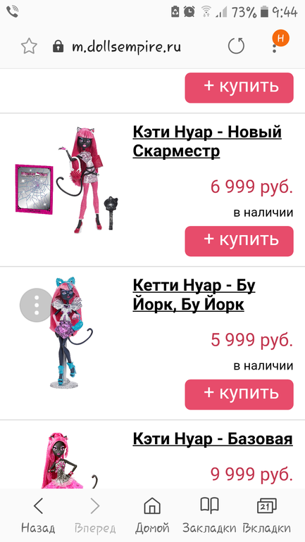 ИгрушкиПомогите найти куклу Monster high Кэтти Нуар. Нигде не могу найти. Дочка заказала на день Рождения. И в интернете или сомнительные сайты с ценой в 8900 или нет в наличии. Может кто-то видел в наличии. Купите, пожалуйста, оплачу оперативно.