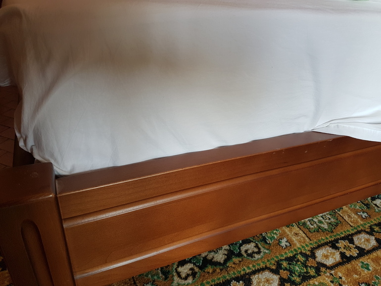 У нас матрас утоплен еще сильнее, никакие бортики не приделаешь. Муж купил в Леруа лист фанеры, распилил на две части, воткнули по обеим сторонам кровати, получился бортик на всю длину кровати. В ноги вплотную придвинули комод, потому что дочь даже через ноги умудрилась выпасть. Дешево, удобно, фанера тонкая - легко влезла. Не очень эстетично, но мне 2-х эпизодов хватило, чтобы забить на эстетику.