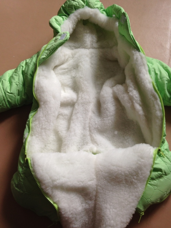 Из коробки собянина достала, отцепила овчину и носим. Правда большой он нам.
