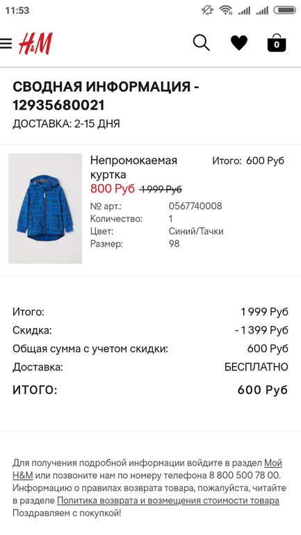 Сейчас Hm запустили распродажу, подозреваю, что с 9 утра.
