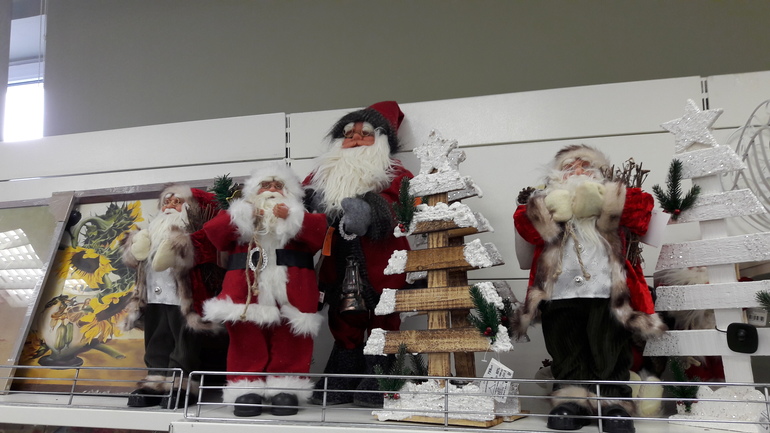 В Фамилии уже выставляют новогодние товары. В Косино видела полно красивых Дедов Морозов разных размеров. Самый большой - мне почти по пояс.)) А вот цены не посмотрела.(