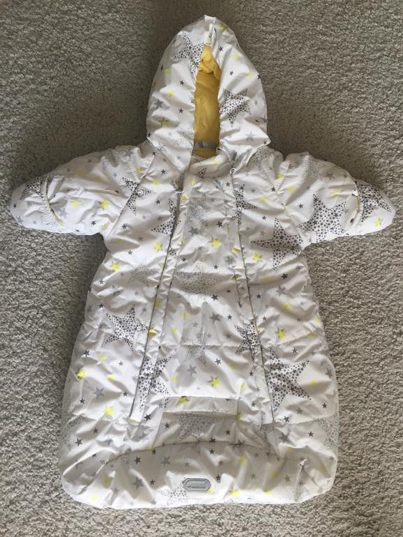 Спасибо, у нас сейчас примерно такой же, тоже пледом укрываю. Мне не нравится больше всего, что он на кнопках и шея из-за этого иногда открытая становится, постоянно приходится поправлять и будить. Да и рассчитан он больше на раннюю осень/холодное лето. С другой стороны на пару недель не практично покупать верхнюю одежду для совсем малышей.