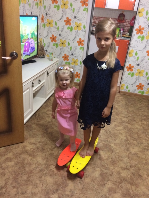 Моя тоже в конце лета начала просить ,мы купили ,кататься по дому научилась очень хорошо (к весне готовы!)и вот младшей на 3 года миниборд подарили ,что б у сестры не отнимала