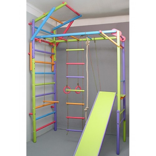 Мы своим мальчикам покупали отдельно ДСК романа карусель (самую обычную,там только кольца,трапеция,канат и турник),отдельно горку+батут(sundays и то и то). Комната 18кв и удобно что-то подвинуть или убрать,если мешает