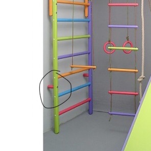 А можно ещё вопрос? Подскажите, шведская стенка от стены на каком расстоянии находится? Можете замерить? У нас по низу трубы отопления проходят. Вот этот штырь сколько сантиметров?