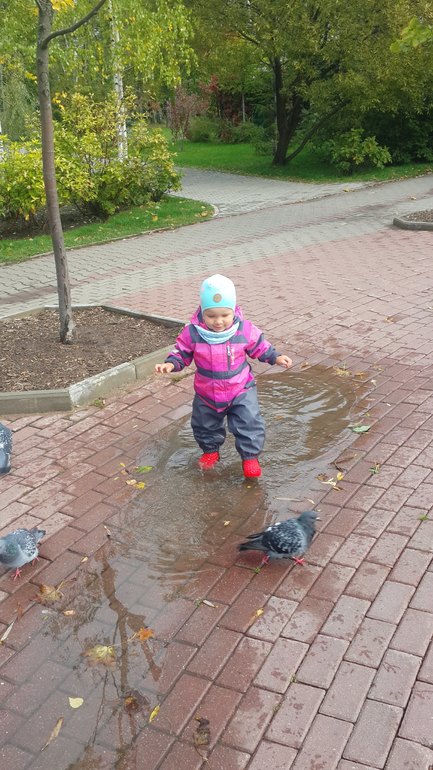 На самом деле мало желающих всю прогулку в коляске сидеть в годик.имхо.Нам почти год и все равно и на площадках тусим,правда ползком пока.Бывают и качели мокрые или другие поверхности.И в листьях валяется тоже с удовольствием.Комбез рейма мембрана 80 гр сейчас,скоро 160 гр буду одевать.