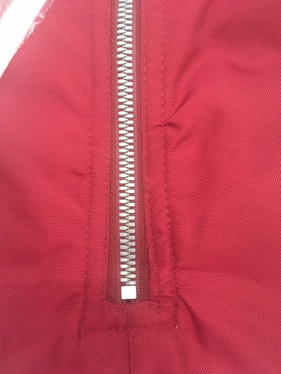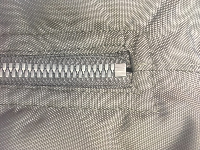 Не простроченный бегунок на кармане, на другом кармане все было прострочено.