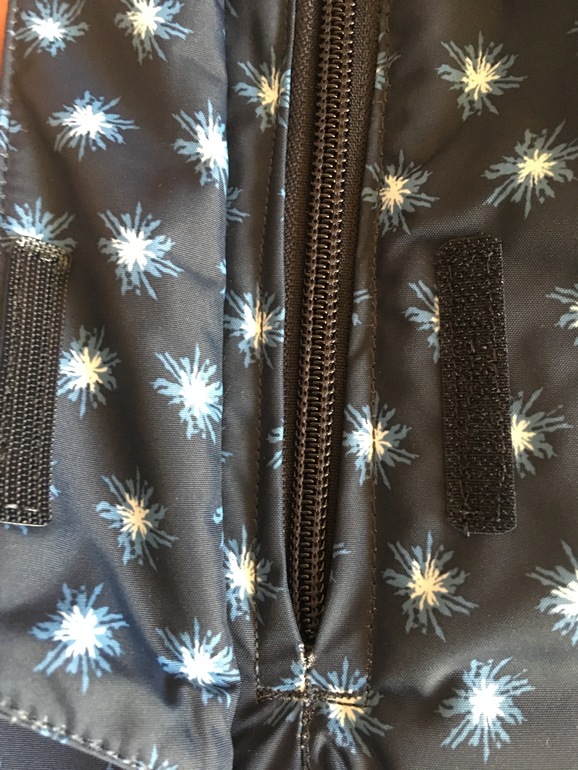 У другого комбеза, который был сделан получше, под молнией оставили вот такую сквозную дырку которая не была изнутри закрыта никакой планкой, т.е. если ребёнок на животе скатился по мокрой горке, то есть вероятность того, что ему туда зальётся вода, может не слишком много, но вероятность такая есть