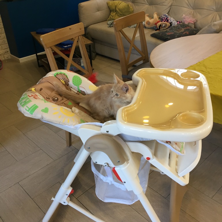 У нас 4Moms стульчик, но он идет с 6 месяцев, положения у него 3, есть и ремни безопасности, только нет колес внизу, но он не особо тяжелый, передвигаю сама. цвет стальной (а не розово-голубой) и столик у него на магнитах. но малыш не сможет этот столик снять, там все хитро сделано. это с младшим, со старшим у нас был деревянный стульчик, вообще без положений но с ремнем, зато потом можно стол и стул сделать.