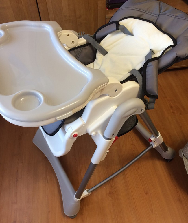 Caretero BISTRO. Спина регулируется 3 положениями, раскладывается прямо до горизонтального, поэтому мы применяли его с самого рождения, и шезлонг не потребовался))) Вообще, очень качественно сделан, без хлопот моется, поднос съемный, ножки задние на колесиках, а передние на фиксаторах, чтобы не "убежал". Цена 7100 рублей, брали в магазине http://caretero-msk.ru