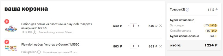 с учетом бонусов зубастик - 748р,сладкая вечеринка - 476 р.