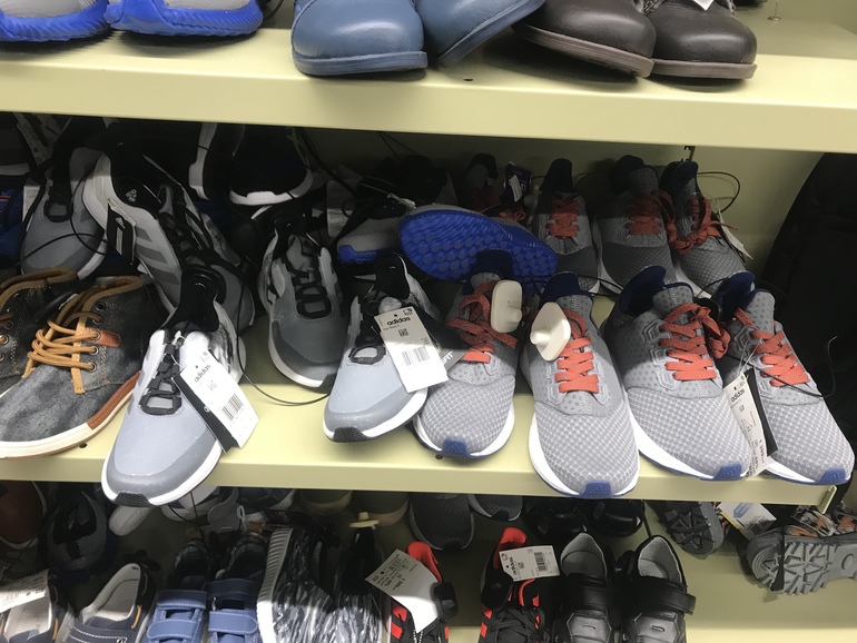 Репортажи из магазиновОчень много кроссовок adidas. Своему одни купила. Хотя сейчас ровно такие же носит😂