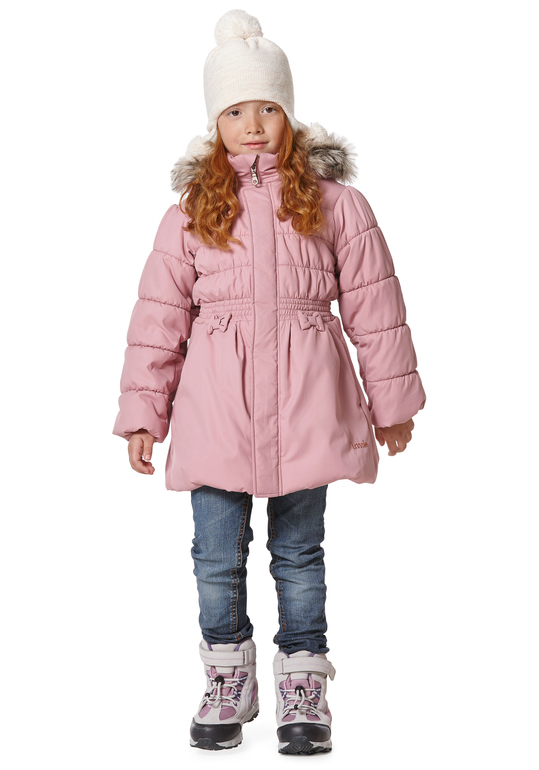 Единый артикул 721720-4390 Преимущества эластичные манжеты,водоотталкивающий,ветронепроницаемый и дышащий материал,эластичная кромка подола,безопасный съемный капюшон с отсоединяемой меховой каймой,карманы в боковых швах Материал Down fabric Зимнее пальто Лесси выполнено из водоотталкивающего и ветронепроницаемого материала с грязеотталкивающими свойствами.