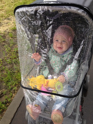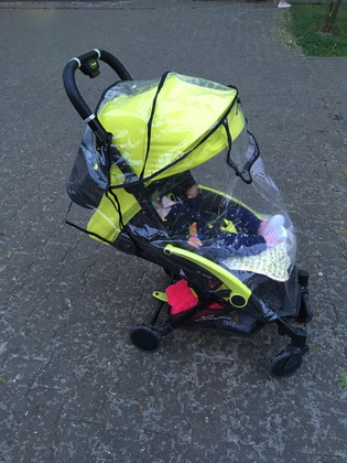Отсутствие накидок и бампера для меня не имеет значения, потому что ребёнка все равно ремнями пристегиваю, а в холодное время года в другой коляске катались. Дождевик на Макларене идет без окошек, цепляется на к капюшону и к раме и закрывает только самого ребенка (остальная ткань не промокает).