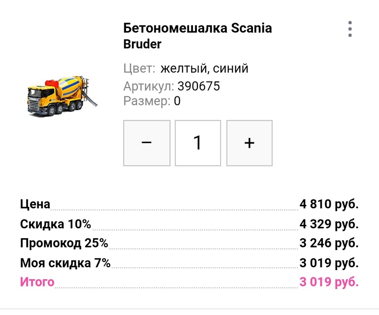Выбор подарка ребенкуХотим на ДР бетономешалку Scania от Bruder. Нашли пока на ВБ за 3400. Но муж в Москву на днях едет. Может где есть дешевле?)