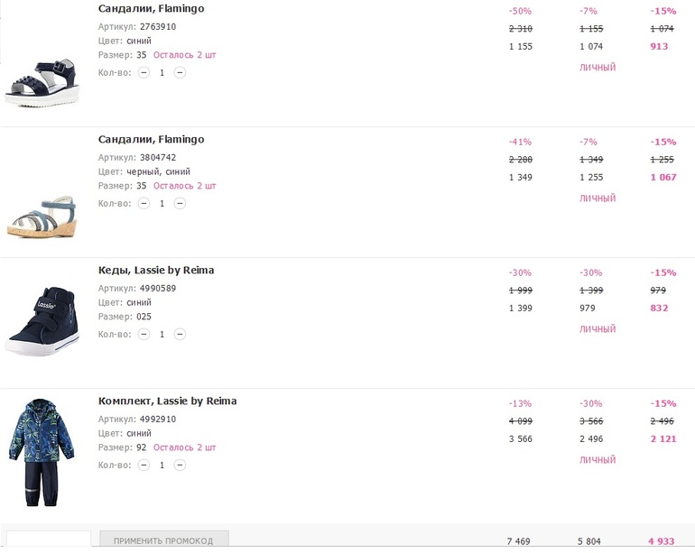 Распродажи. Скидки. Акции.Точнее надо проверять в корзине. Вот пример малышковых Лэсси . Без утеплит.вроде