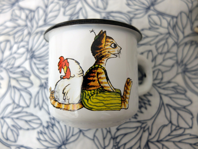 Второе мое приобретение - эмалированная кружечка на 250 мл с Финдусом. Есть еще три варианта - с эмоциями Финдуса, мюклами и Финдусом рыболовом (которой на сайте, почему-то не оказалось). Это дань моей ностальгии по детским советским эмалированным кружкам. Помню у меня была крошечная... В нее было замечательно собирать землянику на даче...