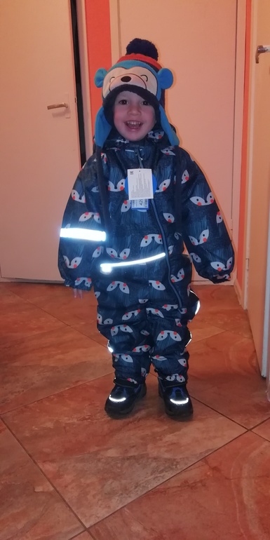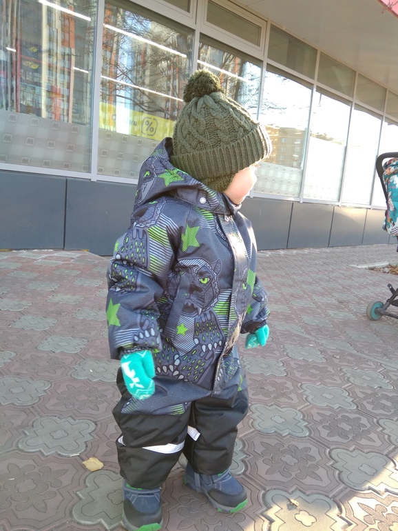 До - 5 поносит имеющийся комбез без утеплителя с поддевой. Потом этот. Интересно, в следующем году будет мал или нет.