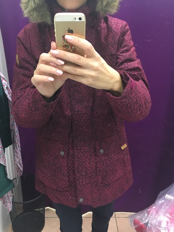Первую я мерила, себе хотела взять, бордовую, тёплая очень, по теплоте меня бы устроила, но сверху ткань похожая на обивку дивана, мягкая, мне не понравилась