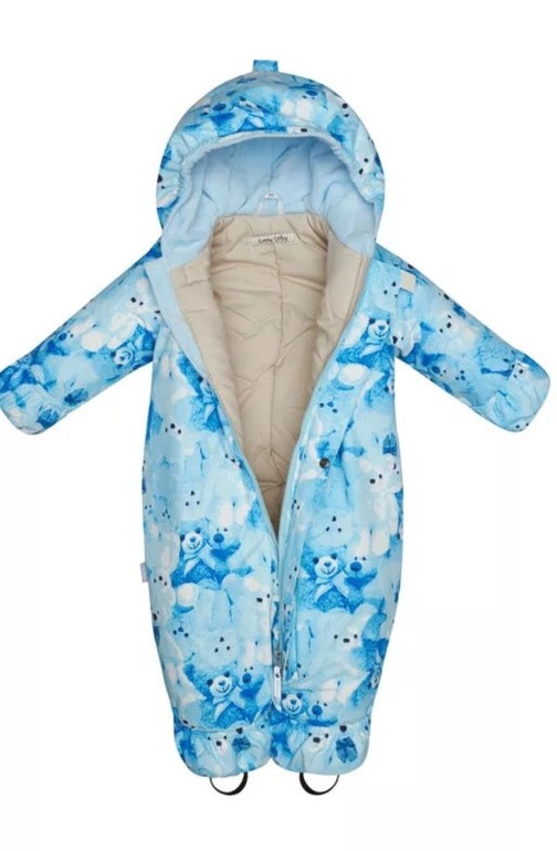 Например, лежащему ребенку ростом 68 надо купить комбинезон размера 80 (удобней одевать и снимать лежащему в коляске). У малышовых моделей на рукавах и штанинах имеются отвороты, закрывающие руки и ноги. Это значит, что лежащему малышу не нужны рукавички и обувь, а также не имеет значения, если длина рукавов и штанин великовата.