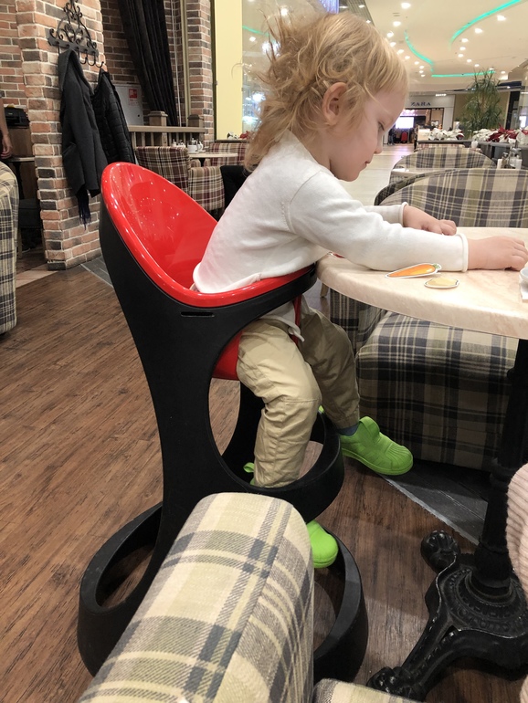 Этот стул продавался раньше, когда ещё моя доча мелкой совсем была) мы его там "примеряли", он оказался неудобным. Подросшего малышонка было туда тяжело посадить и так же тяжело вынуть, так как бампер несъёмный