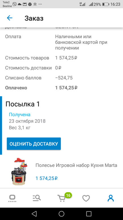 Да, она была 2600 где то, сработал промокод на 500 руб и бонусы списала. Доставка правда у меня бесплатная.