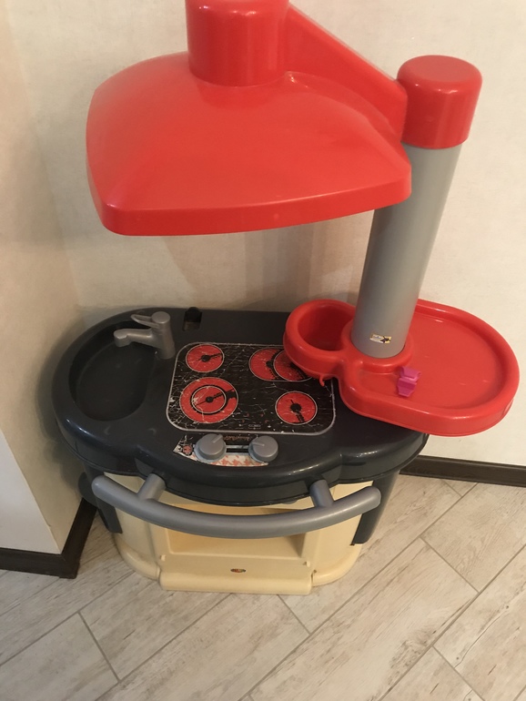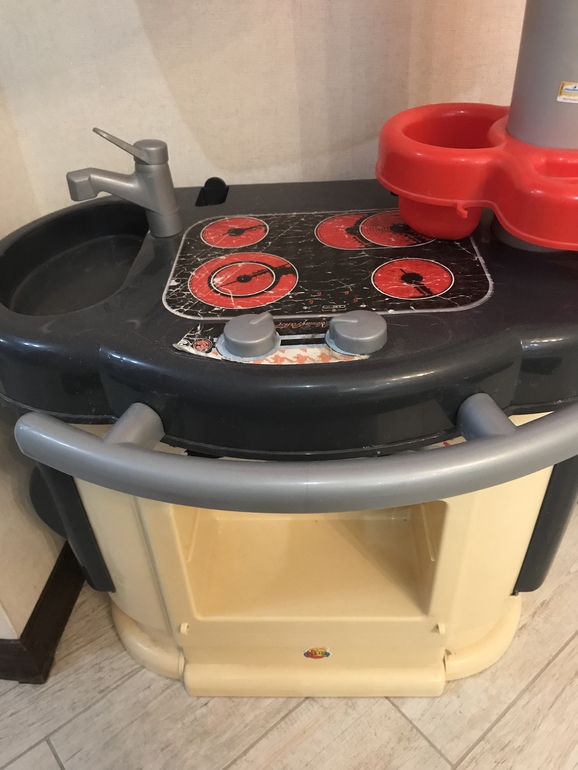 у нас такая кухня. Дверь боковая - сразу отвалился штырек крепления - получилась сбоку открытая полочка - приклеили наклейки! конфорки, часики, плита, стиралка. И вот тут обнаружилось самое интересное - это все (наклейки) боится воды. Не знаю как объяснить ребенку что плиту нельзя мочить - она у нас на даче живет. Да и просто влажная уборка и иногда и помывка под душем необходима. Вообщем наклейки на данный момент в непотребном виде. Написала в полесье - они прислали почтой дополнительный набор наклеек. Думаю переклеить. Но опять же понимаю что не надолго