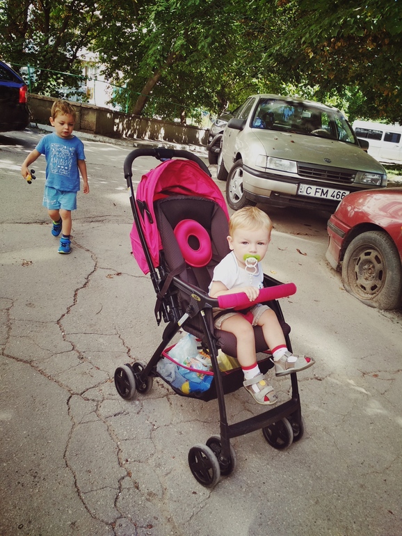 В Joie меня посадка немного смущает - неглубокая, вечно боюсь, что ребенок вбок перевесится и опрокинет коляску, наблюдая за колесами, хотя коляска пока не заваливалась, тьфу-тьфу. Ну и одной рукой тащить ее не так удобно, как эту "докатку", поэтому последнюю я все же чаще беру на прогулку с подросшим ребенком, а розовая с лежачим положением ждет третьего ребенка.