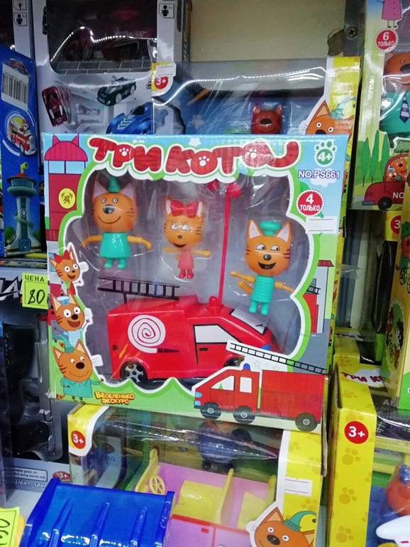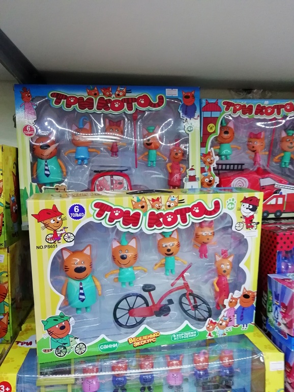 Выбираю подарок племяннику, обожает мультик Три кота. Хочу подарить именно игрушку. Покажите пожалуйста у кого есть, как выглядит, как по качеству? Не представляю где купить? Набор? Или по отдельности? На известных мне сайтах нашла только книжки картонки,пазлы и набор посуды, НЕ ТО.