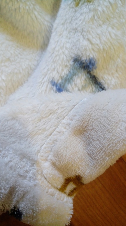 у меня с прошлогодней коллекции, он средний) вес соответствует ткани, я бы назвала скорее легким ,чем тяжелым. сшит он из достаточно плотного флиса/плюша, фиг знает как его назвать даже, на изнанке ворсинки. на ощупь очень приятный и мягонький, материал не скрипучий, очень нежный.