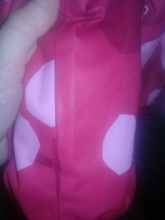 у нас такая,посмотрела,есть небольшие потертости..(((я в шоке..на полукомбинезоне такого нет на попе..в шоке,потому что на слитнике Керри все хорошо,мы весной и осенью в нем ходили .Рукава в идеале