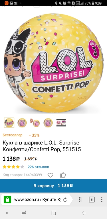 И это еще не все. Мы с дочерью ОБОЖАЕМ LOL, покупали и будем покупать. Ничего страшного я не вижу тут. Кто-то на сигареты больше в месяц тратит, чем мы на LOL. Я вообще не понимаю комментов про "они же страшные" и прочее. На вкус и цвет... Покупаем у девочек с ББ, ссылку не дам, уже карточку за это получила, так что кому надо - найдет.