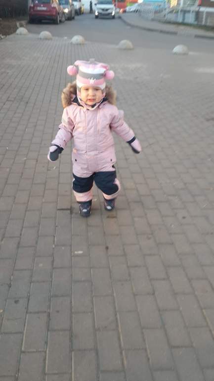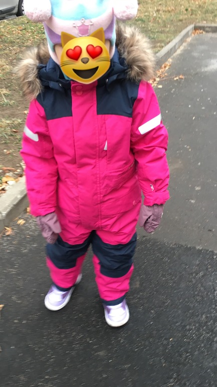 Дидрик размер 90, дочка рост 92, вес 15 кг, возраст 2,2 года, комбез не затянут, в талии можно было бы утянуть. Ноги длинные, фасон очень нам подходит, покупали до этого комбезы на размер больше, чтобы в ногах не задирался быстро, нравится снегозащита в ногах, что силуэт прямой, а не как в рейме бочонком