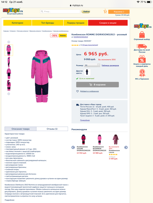 А я не хочу ничего розового, жёлтый моей идёт, запросто купить могу)) Мне нравится вишня, бордо если, есть такие, а так что найду меньше за 5000 куплю сразу, это будет наш первый дидрик, сейчас тикет красный, тоже дочке идёт этот цвет и парка моло светлая, поэтому хочу попробовать другие оттенки. Спасибо за наводку, сейчас гляну oii