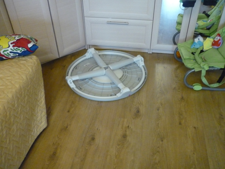 Ножки стола легко складываются, и в сложенном виде занимает ооочень мало места ), поэтому во время уборки или чтобы ребенок отдохнул и соскучился по игрушкам, мы его убираем.
