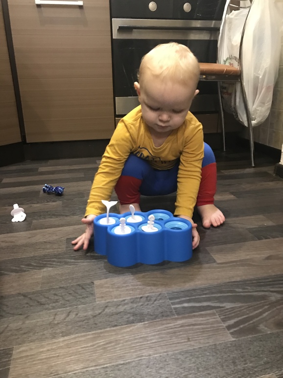 берите!! я такой бы в жизни не купила (мол простой какой-то), а оказался очень нужным. Да, первое время, я эти пластины раскладывала, вставляла в них формы и сын с радостью все вытаскивал :))) и мол, вставляй, мама, вставляй. Так как вставлять эти 18 форм трудно, стала по 1-2 квадрата выкладывать. Думала, сам вставлять он не будет, т.к. формы сложные. Но как только на другом сортере с 3 фигурками просек принцип, начал и этот собирать. Конечно, первое время, выдавала по 2 квадрата, чтоб не было расстройств.