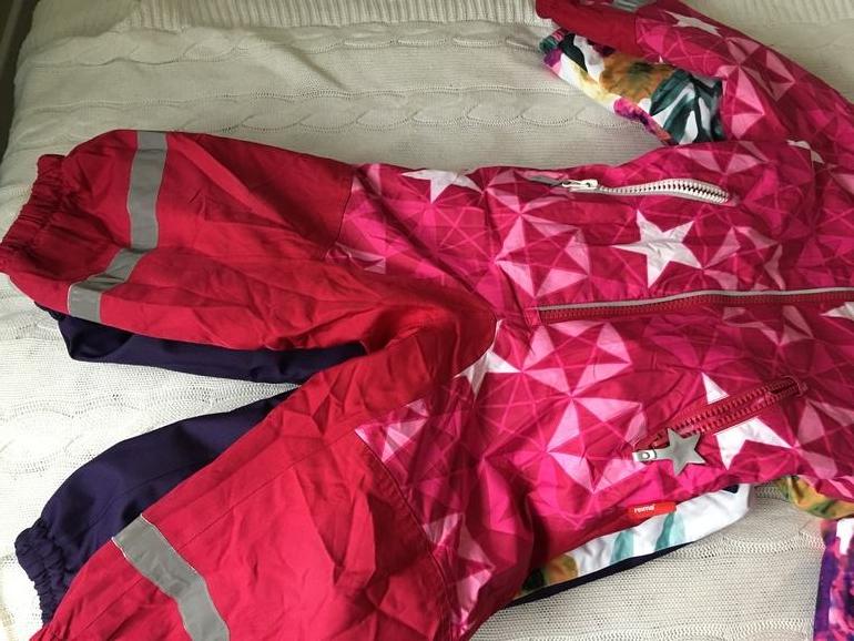 Сравнение со старенькой реймой 104 размера, рукава почти один в один (на см 2 отличаются, правда, когда рейму мерили - руки вообще скрылись в рукавах, что даже пальцев не было видно), ноги у реймы длиннее.