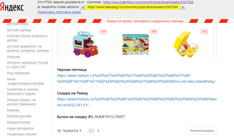 Распродажи. Скидки. Акции.Тут вчера и сегодня висел пост,где девушка писала о промокоде на 9% в Май Тойс. Как я поняла, из-за жалоб о поднятии поста ее пост был перенесен в дневник/удален. А с ним и промокод безвозвратно ушел (((