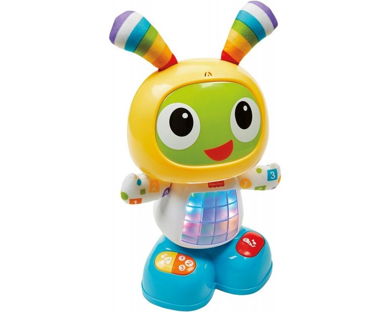 У нас робот Бибель, с 1.2 подходит сама включает музыку и стоит себе танцует, потом за руку приведет с собой, опять включит и типо вместе давай танцевать)