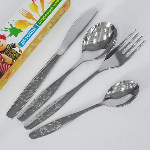 Покупала в ашане набор детский -вилка, ложки столовая и чайная, нож. Правда, давно, с год назад. Именно качественные столовые приборы для детей. Пользуемся уже с год, довольны очень. Наш производитель.