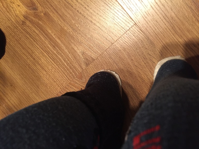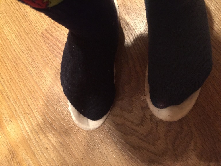 На фото правая нога в колготке+носок, левая -только колгготки. Может купить что-то со стелькой 19,5см? Но пока попадались только 19 и 20см смежные размеры. И ещё если это важно: у сына плоскостопие, может в обуви у него ножка приподнимается на супинаторе и становиться как бы короче...