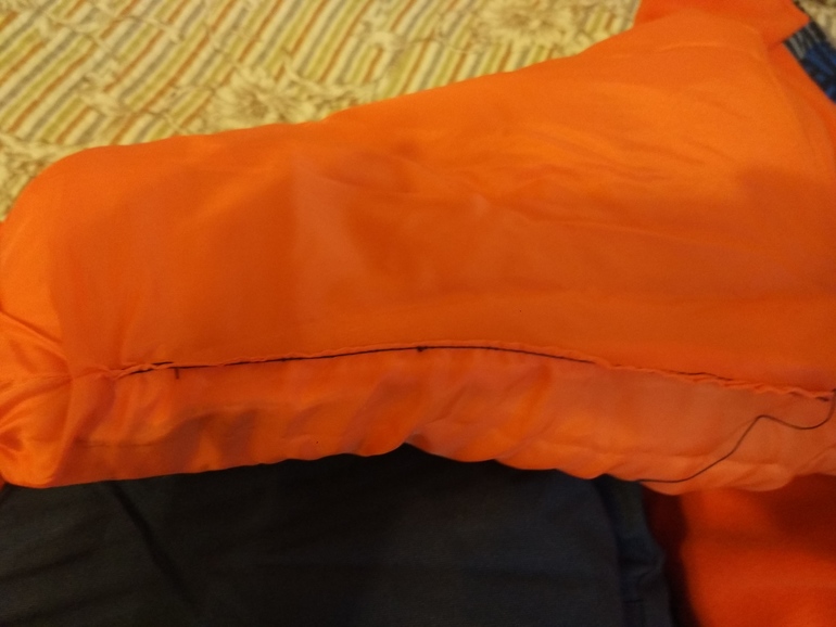 Но главное, это рукав изнутри. Я решила посмотреть, есть ли система роста, и вот что нашла. Это что??? Поверх собственно шва, он прошит, идёт вот такая черная прострочка, как-будто школьница потренировались шить..