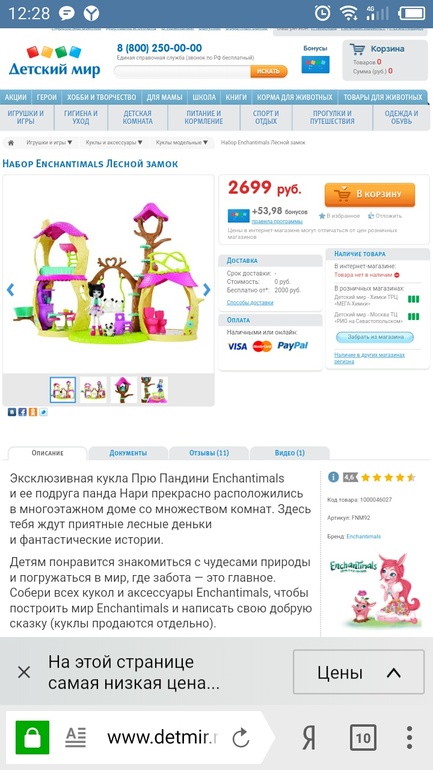 Вы можете здесь https://www.mytoys.ru/product/4950459 со скидкой Лесной домик приобрести. У меня есть дополнительный купон на скидку SMMF77DJY9YP, он суммируется со скидками. Очень надеюсь еще дочери успеть со скидкой заказать Маленькую хозяйку набор.