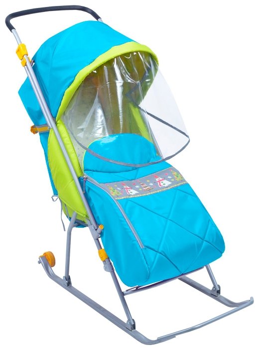 Санки-коляска Ника 7 были в 1,5г дочкиных, все устраивало, но знаю что есть и недовольные. нравилась перекидная ручка(хотя в таком положении на бордюр не заехать), большой капюшон, хорошая накидка для ножек, не страшен снег и ветер.