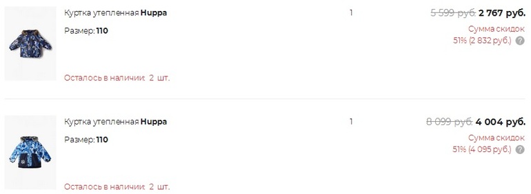 Как пример куртки 300гр. хуппы (-51% суммарно.):