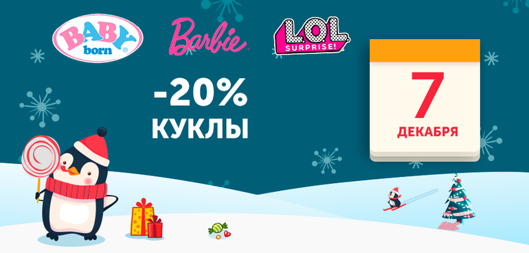 Скидка 20% на куклы в mytoys + купон на 7-9%