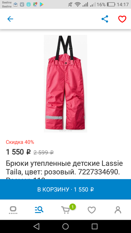 А возраст ребенка?моя просто активничает на улице обычно,я куртку беру 180-200г утеплителя обычно и это на самые морозы,сейчас жарко в такой ей,штаны соответственно еще меньше утеплителя,просто именно Лэсси не было у нас и потрогать негде