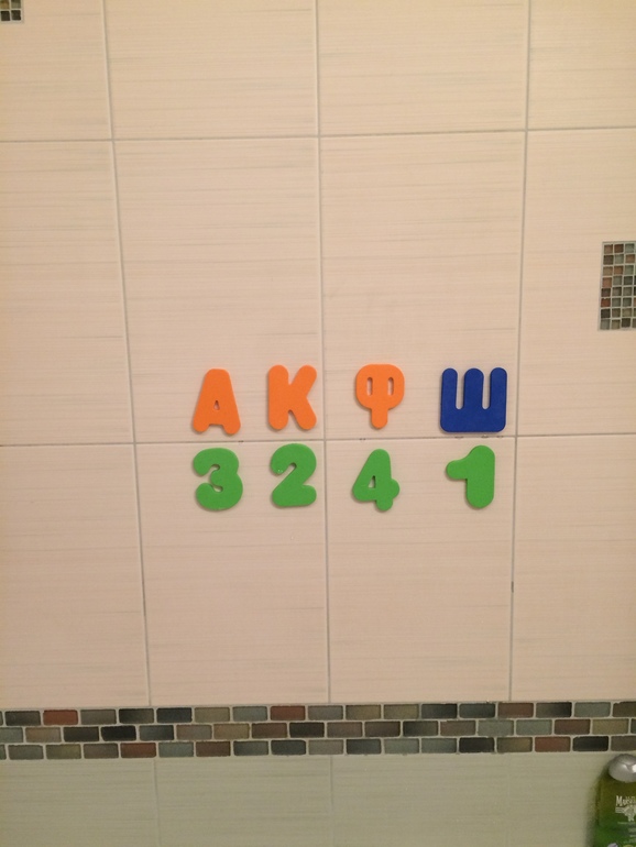 А ещё мы выяснили что буквы и на окрашенных стенах держатся, не так долго как на плитке, но достаточно чтобы играть не только в ванной.🤣
