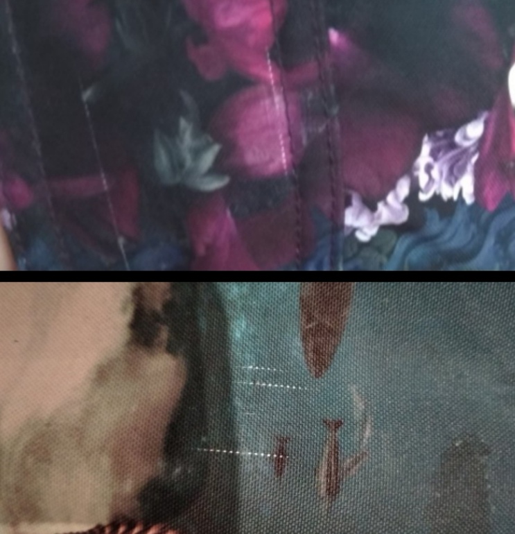 У меня полосатый, тот, который все называли грязной радугой - расцветка, кстати, живьем очень стильная, я колебалась между им цветочками, хотя радуги моловские не люблю :) и на нем еще до надевания обнаружилась затяжка, а в одном месте ткань как будто зашоркалась или через нее прорастает наполнитель типа весенней травки. Так что качество моло увы, да. Но оно таким было и 2 года назад. Мне со второго раза удалось купить розовые горы без брака.